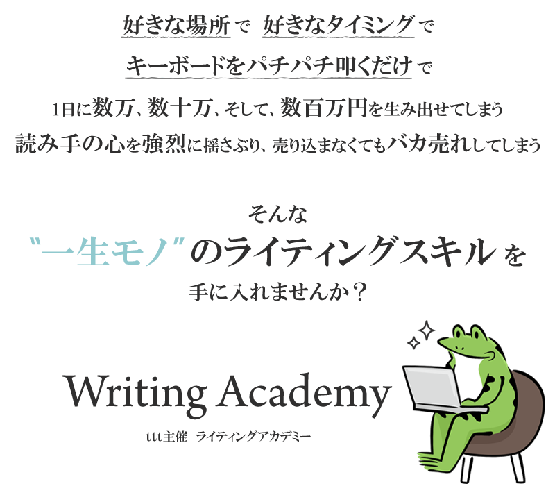 で、その身に付けたライティング力は、今後何度でも富を生んでくれます。